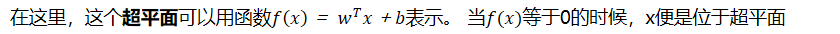 在这里,这个超平面可以用函数表示。 当等于0的时候,x便是位于超平面